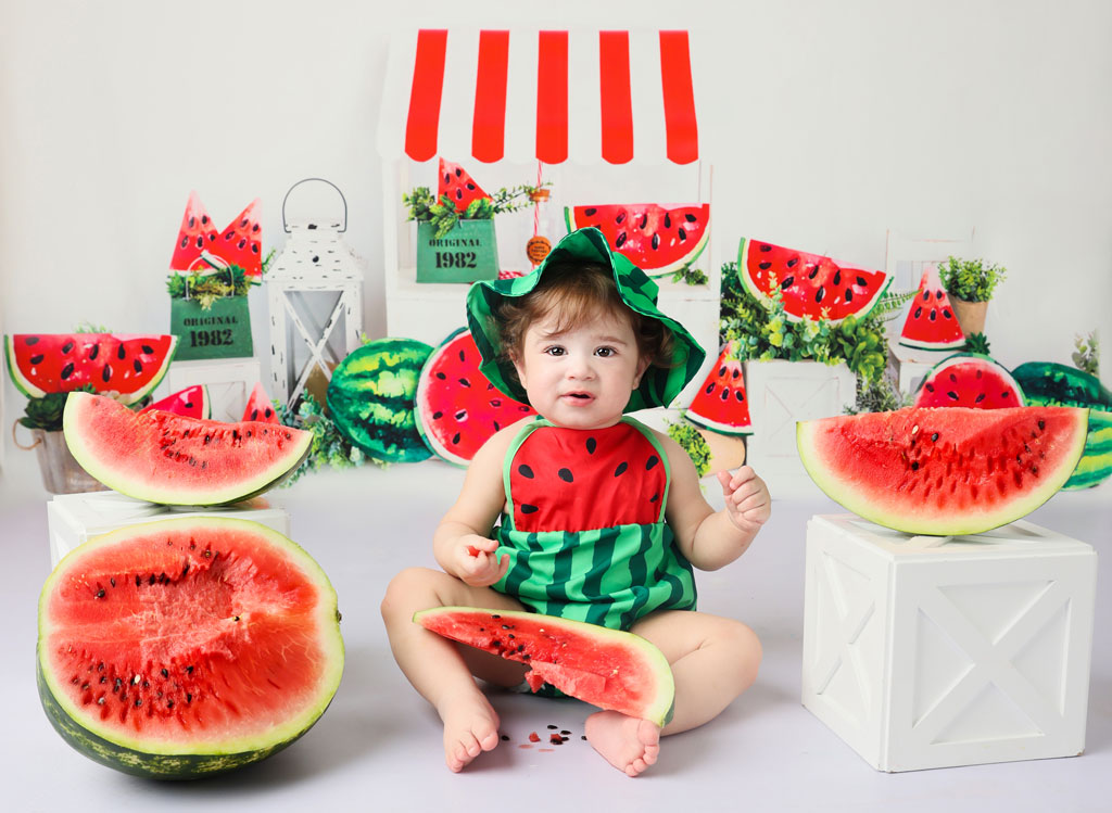 A refreshing moment captured by Dania Malas: a sweet baby enjoying their first juicy bite…