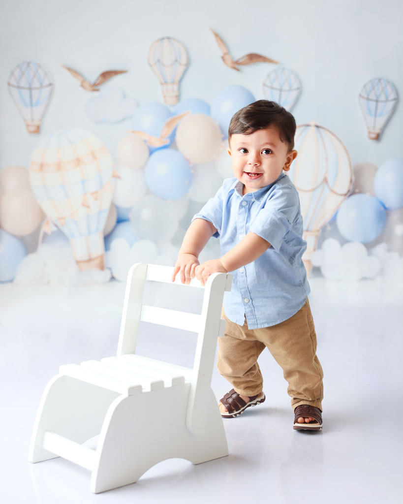 Dania Malas captures an adventurous moment with a tiny baby dressed in jeans, confidently standing…